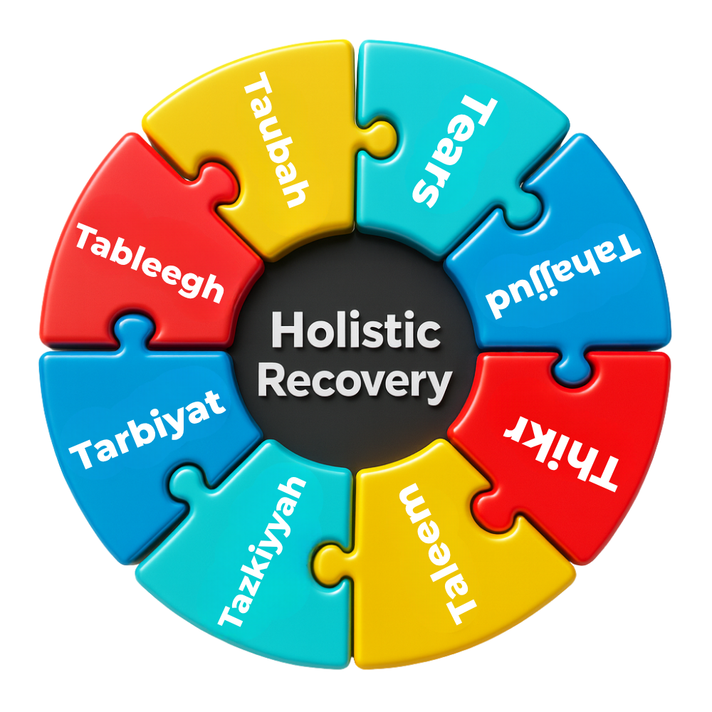 Our facility is committed to providing a holistic, faith-centered pathway to recovery for individuals facing substance abuse and related challenges. Rooted in the timeless guidance of the Qur’an Shareef and the Sunnah of Rasulullah ﷺ, we combine spiritual healing with therapeutic and practical interventions to support complete transformation of the mind, body, and soul.